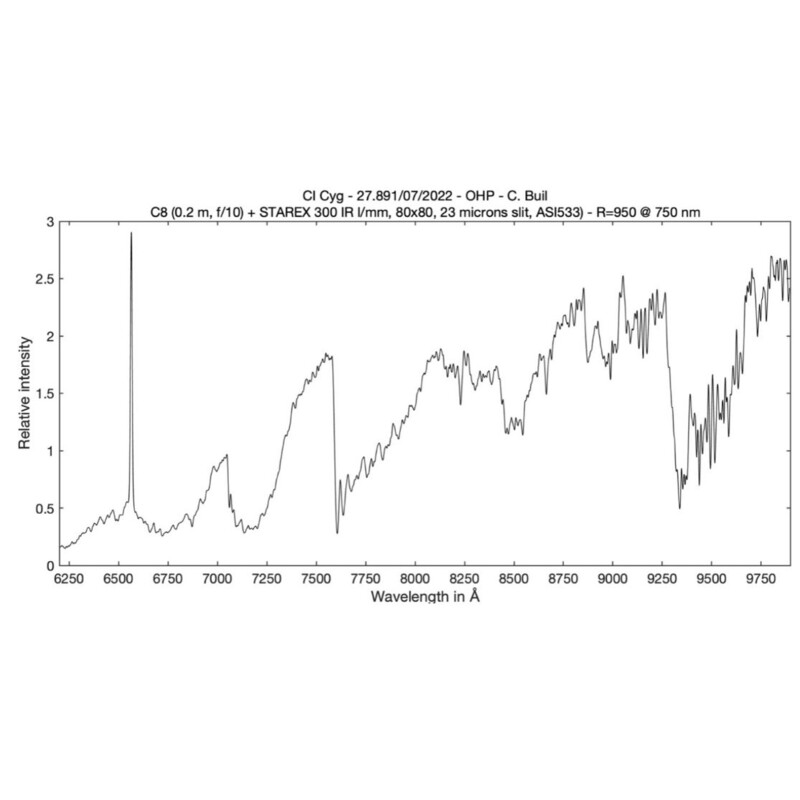 With a small telescope, you can already record spectra of faint objects in low resolution. This makes it possible to observe the entire visual range - that is, the continuum of the object as well as the numerous absorption and emission lines. All these phenomena are signs of the activity of stars.