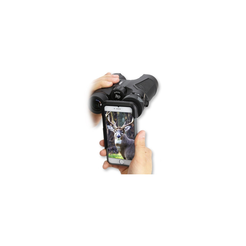with binocular adapter for binoculars with 32-50 mm eyepiece diameter. This binocular adapter comes with 2 interchangeable rubber rings. Once you have selected a rubber ring for the correct fit on the eyepiece, press it firmly and you will be able to see amazing and extraordinary images on your Smartphone. Ideal for hunting or bird watching, for example.