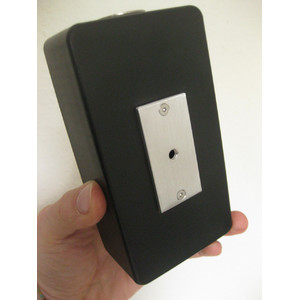 On the underside of the easy star there is an aluminium plate with a 1/4" photo thread. With this thread you can attach the easy star to a photo tripod. To make it easy to find the artificial star in the field, the pinhole can be turned to the side. Once you have aligned the telescope with the easy star, turn the pinhole aperture in front of the green LED. The hole in the aperture, which has a diameter of 0.05 millimetres, produces a clear artificial star. You can now begin adjusting the optics.