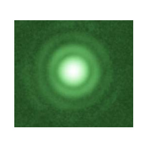 Adjust the optics so that the diffraction rings are concentric intra- and extra-focal. The optics of your telescope are now perfectly adjusted. The wavelength of the green easy star is selected so that the eyes can easily recognise the diffraction rings around the easy star. The light can also be dimmed to adjust the brightness to a comfortable level. The knob on the easy star's potentiometer is green fluorescent. This allows you to find the instrument even at dusk or at night when the easy star is switched off.