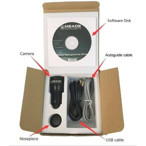 In addition to the software, the camera also comes with a USB cable, an ST-4 cable and a 1.25" nosepiece to allow you to connect the camera to the telescope via the C-thread or into the focuser like a 1.25" eyepiece.