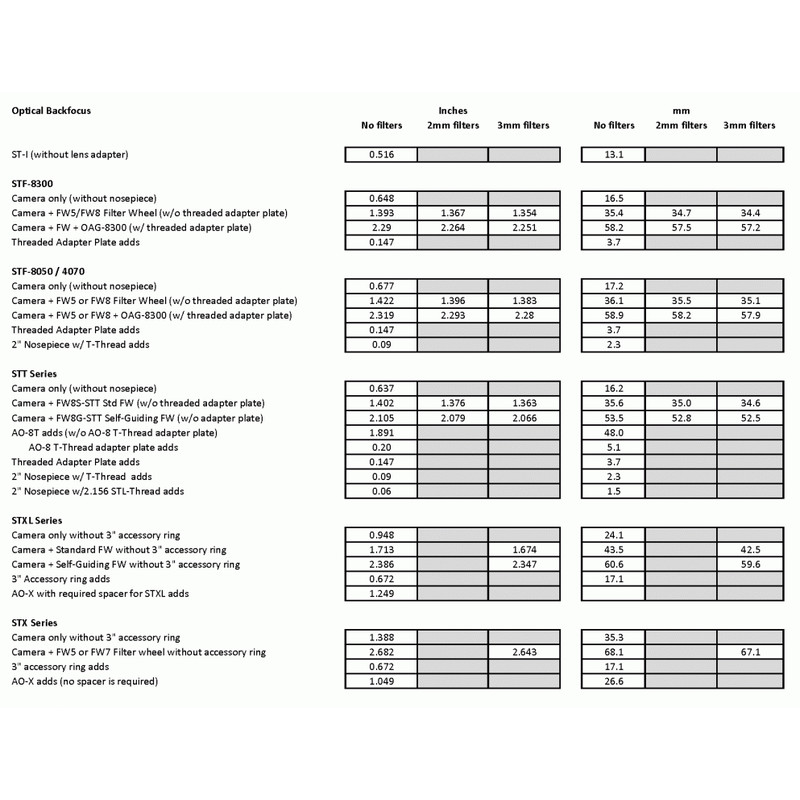 - Optional AO-X Adaptive Optics: All STX and STXL models can operate with the AO-X Adaptive Optics accessory. The AO-X uses a tip-tilt window to quickly and precisely adjust the image position in response to autoguider feedback. With Adaptive Optics there is no backlash, stiction, or lag, and the movements are precise and accurate. This allows the AO-X to not only remove the effects of periodic error, drift, and wind gusts, but also reduce the effects of atmospheric seeing.