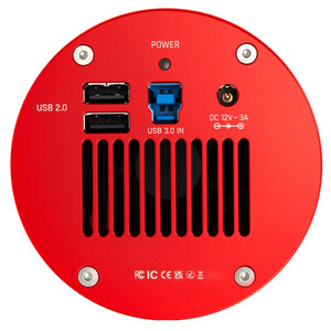 External power supplies are needed for all ASl-cooled cameras. We recommend you use a 12V@3A~5A DC adapter (D5.5×2.1mm, center pole positive) or a lithium battery with 11-14V to power the camera. Be aware that using a power supply out of this voltage range will probably lead to irreparable damage to the camera.