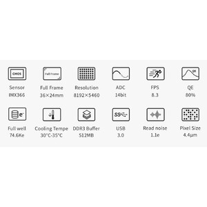 The internal 512MB DDR3 image buffer effectively reduces the pressure on computer transfer. This is a great help for planetary photography, where large amounts of data often need to be written in a short time. Some of the deep sky astrophotography cameras on the market today often only have 256 MB. This is a real bottleneck and source of image errors.
