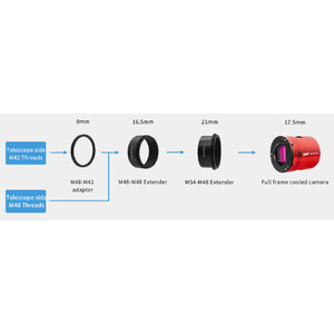 Tilt adapter: The ASI4400MC Pro has three pairs of adjustment screws for sensor tilt. Each pair consists of a push screw and a pull screw, which allow you to precisely adjust the alignment of the sensor to the optical axis of your telescope. This adjustment helps to correct even slight tilts that can cause stars to appear distorted or blurred at the edges of the image. This ensures sharp and uniform focusing across the entire image.