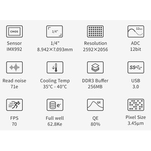 The ZWO ASI992MM Pro sets new standards in the SWIR range: it combines a specialised InGaAs sensor with high sensitivity in the range up to around 1.7 µm, powerful two-stage cooling, low readout noise and solid data storage.