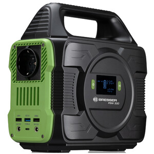 The BRESSER power station can be used to simultaneously charge up to four mobile devices via USB, such as phones, MP3 players, games consoles, cameras, and drones. The device is equipped with one USB-C port, two USB-A ports and one USB-A fast charging port that supports Qualcomm Quick Charge 3.0. Up to two 12-V devices can also be powered via the two DC 2.1/5.5 mm sockets. The power station comes with two 5.5/2.1-mm coaxial connector to cigarette lighter adapters, which can be used to connect car/camping devices such as cool boxes, water pumps, mini compressors, and air pumps directly or in parallel. The device is also equipped with a socket with 230 V and 300 W continuous output, which is ideal for connecting laptop/tablet/smartphone chargers, cool boxes, and musical instruments, or other electrical devices in this power class.