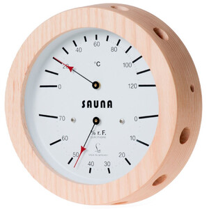 Hair hygrometer, synthetic, combined with bimetal thermometer for measuring air humidity and temperature in the sauna.