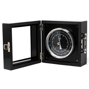 Inspired by Marine chronometers, which are part of the mandatory inventory on a ship's bridge, Fischer created a limited "Black Edition" of the precision aneroid barometer in 2024, which has a particularly elegant appearance with its black lacquered solid wood case. The instrument's dial is also black, while the bezel is made of brushed stainless steel. The double-edged index pointer in the cover glass enables parallax-free reading of the measured value.