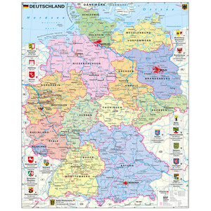 > Stiefel Map Deutschland politisch mit Wappen (97 x 119 cm)