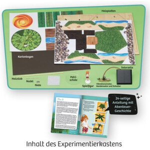 • Hochwertiges Experimentiermaterial wie Solarzelle, Kondensator und Rüttelmotor sorgen für unterhaltsame Versuche rund um Solarstrom, Photovoltaik, Thermodynamik und erneuerbare Energien.