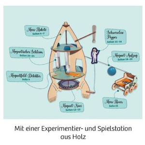 Welche unsichtbaren Kräfte stecken in Magneten? Mit dem Experimentierkasten „Pepper Mint und das Mars-Abenteuer“ von KOSMOS werden 8 bis 11-jährige zu Weltraumforschern. Im Handumdrehen wird dafür eine Rakete aus hochwertigen Holzplatten zusammengebaut. Sie ist die Experimentier- und Spielstation für sieben spannende Versuche.