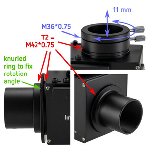 In addition, to parfocalize the eyepiece with the DSLR, you will need at least an additional 35 mm (or even 50mm) extension tube in the eyepiece holder. Without this, the eyepiece will not reach focus at the same position as the camera.