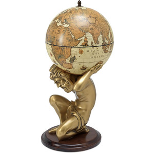 The antique world map with latin inscription completes the theme and emphasizes the mythologic character of this statue. With this, Zoffoli combines the practical benefit of a bar globe with a stylish atmosphere of the Atlas-saga. Ensure with this decorative article a sophisticated and appealing mood at home.