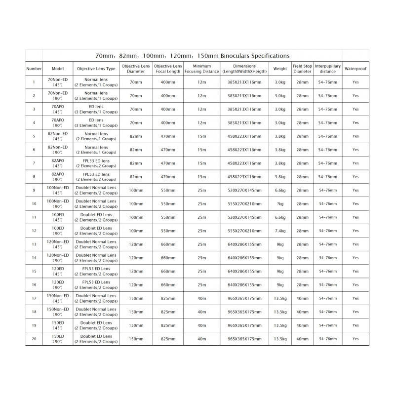 This spherical excellently corrected 2-lens (rear lens OHARA FPL 53 SD) air gap SD APO binoculars provides extremely high contrast. The color correction, contrast and transmission just as good as other Japanese glasses, that cost significantly more. In the basic equipment we have included 1 set 18mm eyepieces. The focal position was chosen so that Tele Vue Delos, Nagler, panoptic, and the Docter can be 12.5 mm UWA eyepiece focused. Sliding dew shields with front cover plate, a carrying handle with sighting device, a photo tripod adapter with 3/8 "thread connection, and 2 eyepieces with 37fold magnification are integrated. To keep the weight to a minimum, the binoculars housing is made of magnesium alloy.