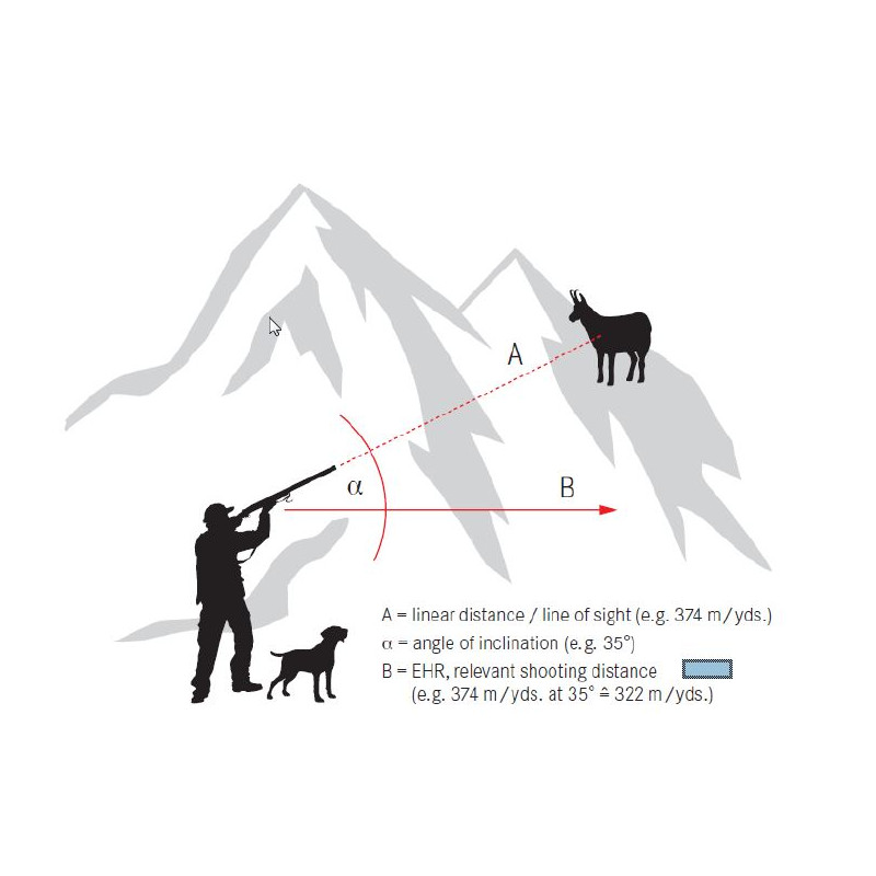 The extended level range, EHR, is the advantage over other rangefinders - no other instrument in the premium hunting segment allows the output of the angle-compensated range with such a long range - ideal for long-range shots and mountain hunting.