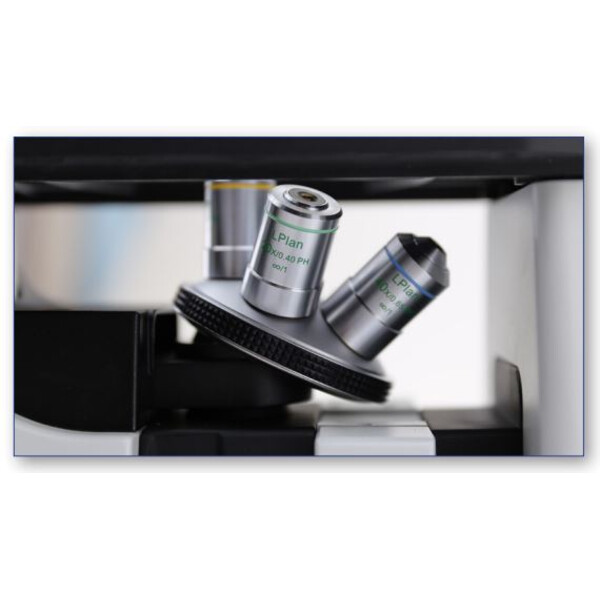Condenser: LWD pre-centered condenser, N.A. 0.30, W.D. 72 mm. With 4x/10x, 20x/40x phase contrast slider and brightfield.
