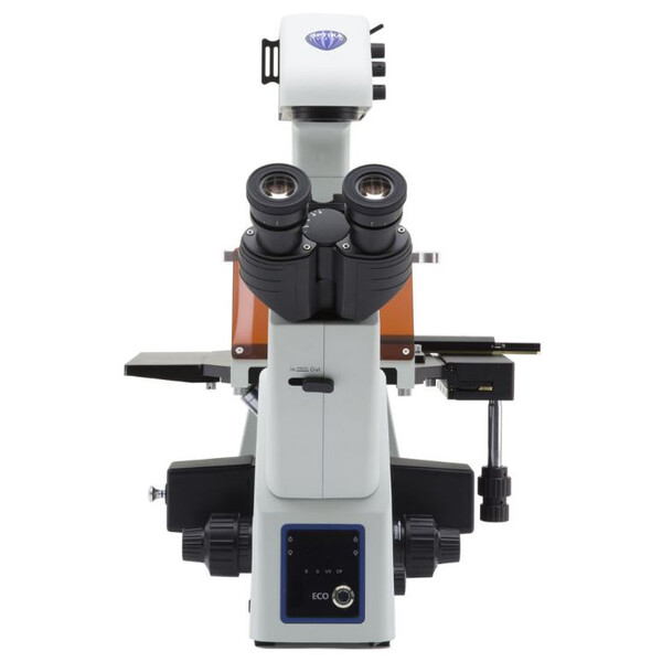 This inverted research microscope drives to new horizons providing Köhler condenser, ergonomic handy controls and significant unique features, such as the highest F.O.V. available on an inverted microscope (F.N. 24 mm).