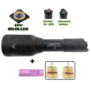 Maximtac HD-IR-Pro 3rd generation with 850 nm and 940 nm LED unit – A focusable and dimmable hunting lamp specially developed for night hunting!