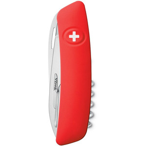 The Swiss knife SWIZA D05 with revolutionary 360° design and robust non-slip surface fits perfectly in your hand. The knife’s ergonomic shape makes all tools easily accessible and the die-cut slot allows easy opening for both right-handed and left-handed users: 75-mm blade with secure lock, saw, punch and awl with sewing eye, bottle opener with flat-head screwdriver No. 3 and wire bender, can opener with flat-head screwdriver No. 1, sommelier corkscrew and tweezers.