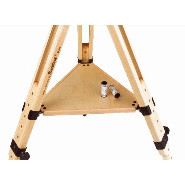 Metal clamps are equipped with an eyelet to allow attachment of a steel chain (Accessories - click here.) as required. Mounting head with easy-to-read 360° scale and spring-mounted fastening screw - 1 / 4" standard, 3 / 8" and 5 / 8" optional. Adjustable leg spread possible at an angle of about 20° or about 45°, optional continuously leg spread up to an angle of 90°. The recommended deposit tray (37 cm) is available as accessories. The practical tray for small items fits between the tripod legs to provide extra stability. In connection with the Adapter recommended for Meade ETX-Astrotelescops. All metal clamps are equipped with an eyelet to allow attachment of a steel chain as required.