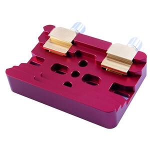 This prism clamp allows secure attachment of prism rails according to Losmandy or Vixen standards. The clamp is secured by two brass blocks and is therefore particularly secure - without leaving ugly marks on the rail!