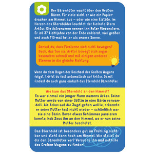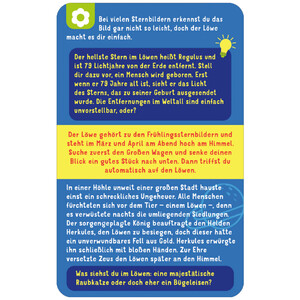 - 30 Karten mit Sternbildern: Jede Karte zeigt ein Sternbild, erklärt seine Form, Lage und die dazugehörige Mythologie