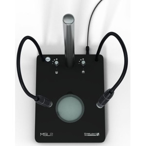Two flexibly positionable gooseneck lights serve as incident light. Thanks to the modul-LED® system developed by StarLight, the LED modules in the light heads can be changed quickly and easily, ensuring that the optimum light is available for every application. The LED modules are available in different light colours and beam angles. UV modules in several wavelengths are also available.