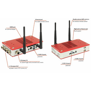 EAGLE controls the camera and other accessories and supplies all systems with power. You can control all your equipment wirelessly via WLAN with EAGLE using your Smartphone, tablet or laptop. EAGLE is based on Windows 10. With EAGLE, you can use a wide range of programs, for example: Cartes du Ciel, PHD2 Guiding, BackyardEOS, BackyardNIKON, MaximDL, Voyager.