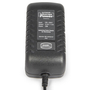 The Baader Outdoor Telescope Power supply offers continuous 1.5 Amp/ < 12 volt DC voltage all accross the AC voltage range from 90 to 260volt. Even at extreme cold the voltage can not go down as far as to damage the electronic components or motors of your telescope mount.