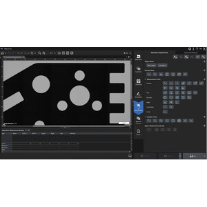 Advanced interactive measurements, including automatic edge detection and auxiliary lines (any line, vertical line, horizontal line, circle-to-circle distance, polyline, freehand polyline, linear ruler, perpendicular line, multiple perpendicular lines, multiple parallel lines, taper thickness, freehand polygon, closed polygon, interpolated polygon, magic wand, rectangle, rotated rectangle, 2-point circle, 3-point circle, circle with edge detection, multi-point circle, rotated ellipse, 3-point angle, 4-point angle, angle ruler, point coordinates, centre point, number of points)