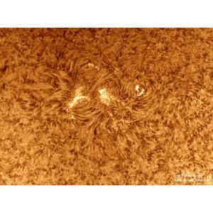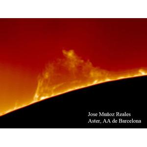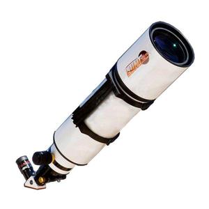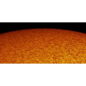 This complete solar telescope is a high-quality achromat, with the front lens reducing stray light to half that of a standard achromatic objective. This eliminates possible coma, astigmatism, centering deviations and, together with the appropriate collimation lenses, makes a spherically-corrected flat-field solar telescope. The image is optimized for maximum sharpness in the red part of the spectrum. The optical system is shadow-free (no central obstruction) and is suitable for observing the Sun's surface, as well as for prominences. The tube is made of metal and has been painted white.