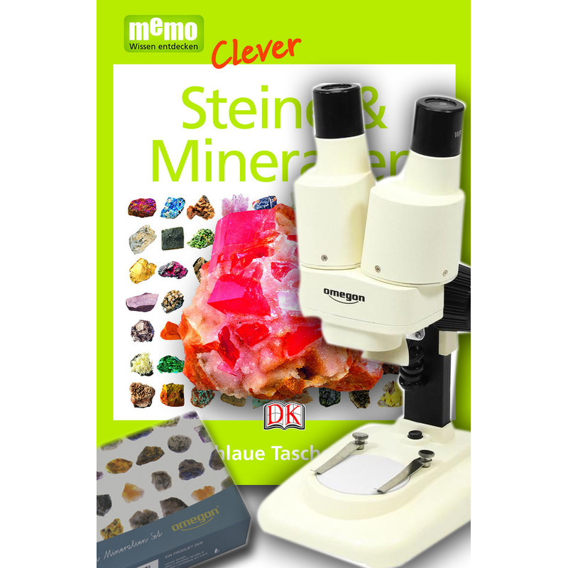 In addition to a stereomicroscope, this mineral-set includes an attractive booklet (in German) and a small mineral collection.