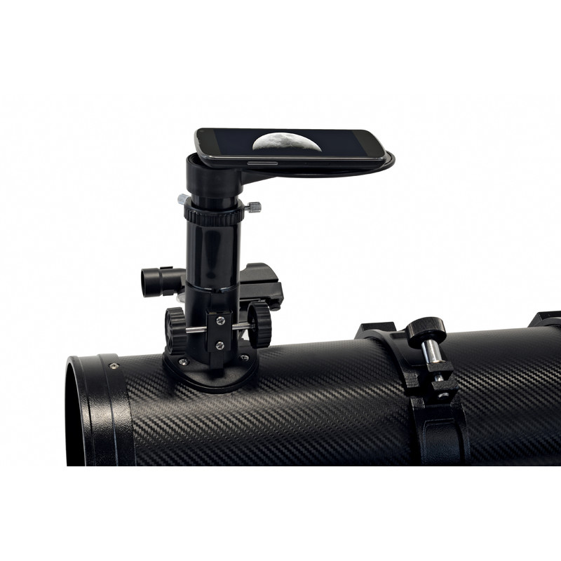 With its 76-mm objective aperture, the telescope collects about 118-times more light than the naked eye. The spherical mirror has a focal length of 700 mm, the combination of mirror diameter and focal length results in the creation of crisp images.