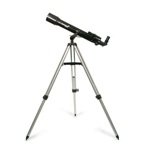 With its 70mm aperture, this refractor collects 100 times more light than the naked eye and substantially more light than a typical beginner telescope possessing an only slightly smaller aperture of 60mm. This means it also has a higher resolution and, with a maximum magnification of 140X, can already show you the larger surface features when observing planets such as Saturn, Jupiter and Mars. It is also very rewarding to observe the moon: One can beautifully observe the cratered landscape of the moon, which always looks different depending upon the moon's current phase. It is also interesting for nature watching in daylight - made possible by using an erecting lens or an Amici prism. Focusing takes place by means of a rack and pinion focus wheel at the focuser. This allows the image sharpness to always be precisely adjusted and to remain fixed during observing.